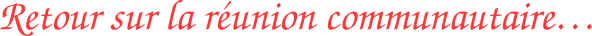 La dernière réunion communautaire a eu lieu comme prévu le lundi 27 mai.