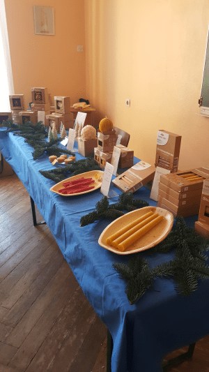 Des bougies Camphill fabriquées à la main en cire d’abeille naturelle, de différentes formes, sont en vente à la Communauté.
