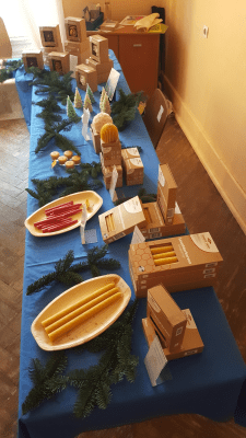 Des bougies Camphill fabriquées à la main en cire d’abeille naturelle, de différentes formes, sont en vente à la Communauté.