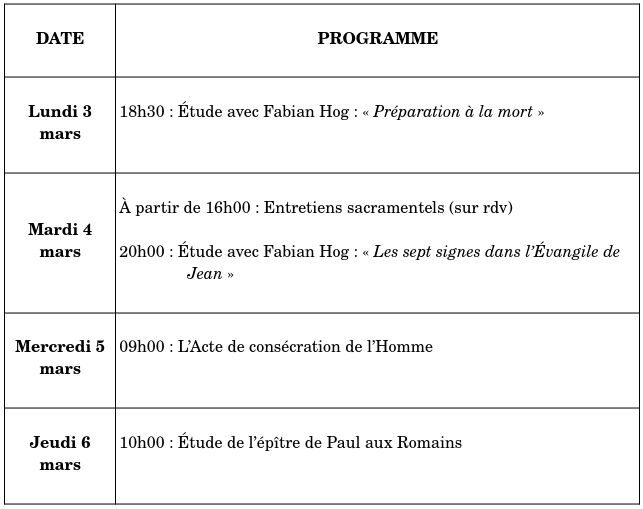 - le jeudi 6 mars à 10h00 pour l’étude de l’épître de Paul aux Romains