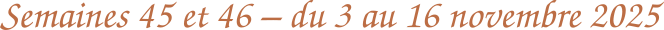 Mercredi 5 novembre :