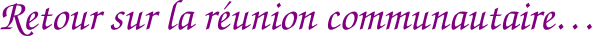 La dernière réunion communautaire a bien eu lieu comme prévu, le lundi 10 février.